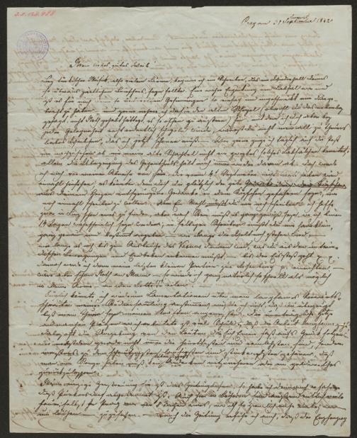Alt, Rudolf von: Brief an Hermine Alt. Prag, 31.8.1842