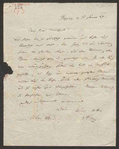 Auersperg, Anton Alexander: Brief an Marie von Auersperg. Gloggnitz, 31.1.1847