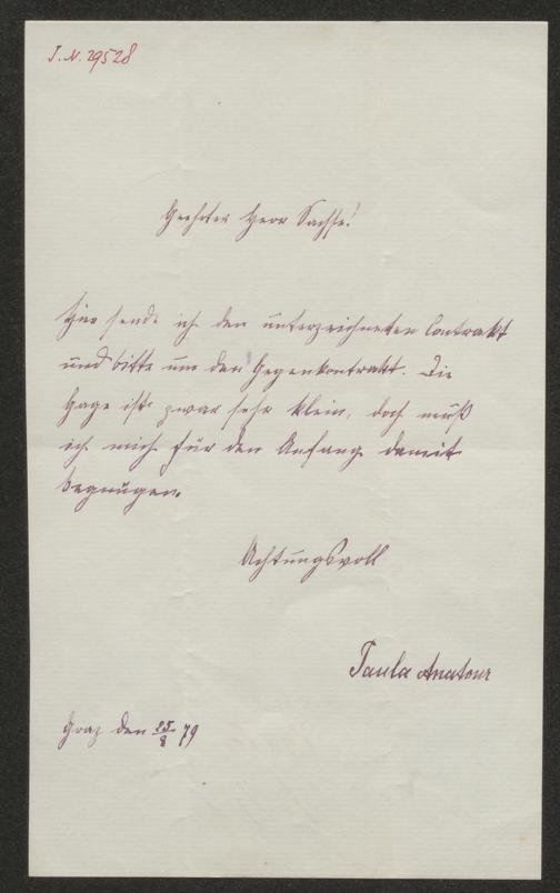 Anatour, Paula: Brief an Carl Albert Sachse. Graz, 25.8.1879