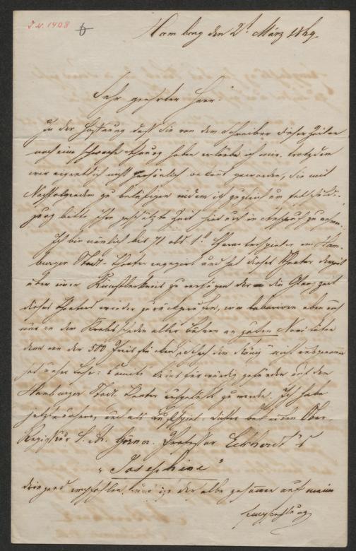 Benthack, Adolf: Brief an Emil Rittershaus. Hamburg, 2.3.1869
