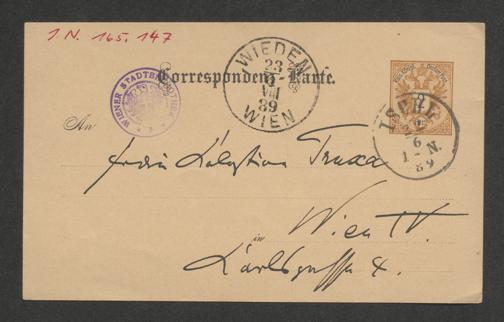 Brahms, Johannes: Postkarte an Celestine Truxa. Bad Ischl, 22.6.1889