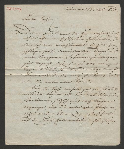 Debrois, Johann: Brief an Johann Debrois van Bruyck, jun. Wien, 15.10.1820