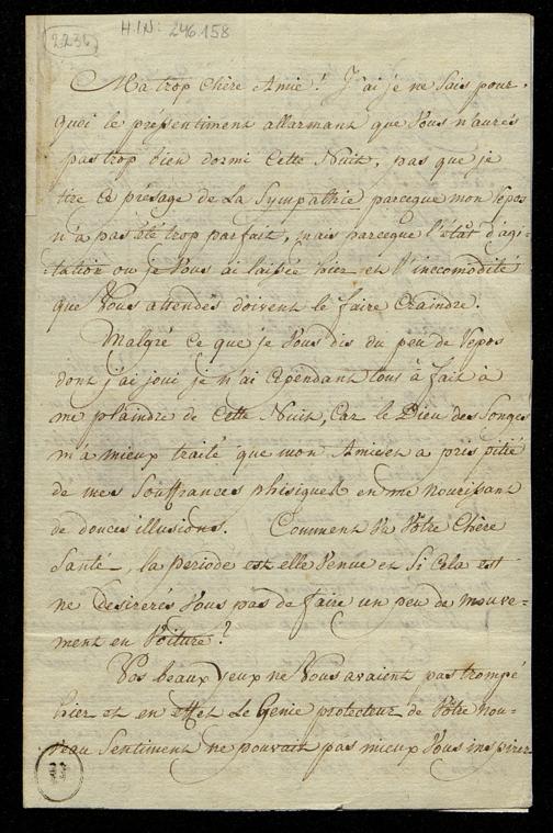 Bl. 1v: "[...] Ne savés vous encore rien de Borghi ma Belle Amie, si on pouvait prevoir à peu près son arrivée on pourrait Lui fairela Galanterie d'aller aussi à sa rencontre jusques vers Mestrino [...]"