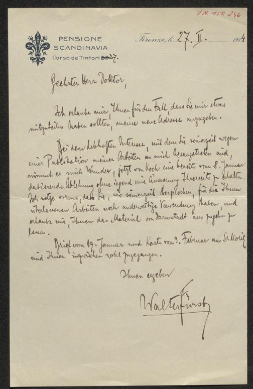 Fürst, Walter René: Brief an Arthur Roessler. Florenz, 27.2.1914