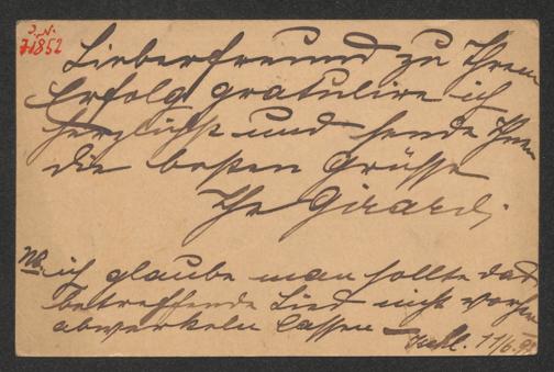 Girardi, Alexander: Korrespondenzkarte an Oskar Franz. Bad Ischl, 11.6.1897