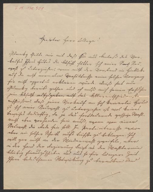 Herbst, Eduard: Brief an Bartholomäus von Carneri. Kundratitz, 29.10.1883