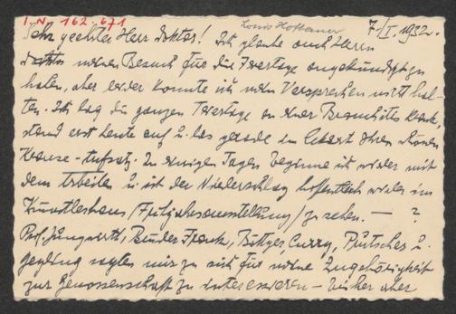 Hofbauer, Louis: Billett an Hans Ankwicz-Kleehoven. o.O., 7.1.1932