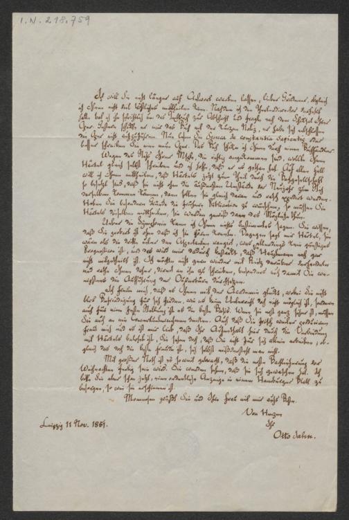 Jahn, Otto: Brief an Carl Georg Peter Grädener. Leipzig, 11.11.1851