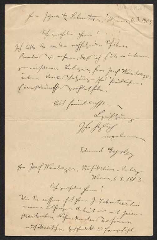 Eysler, Edmund: Brief von Edmund Eysler an Ignaz Schnitzer. Wien, 6.3.1903