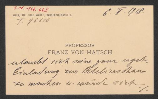 Matsch, Franz von: Billett an Arthur Roessler. Wien, 6.5.1918