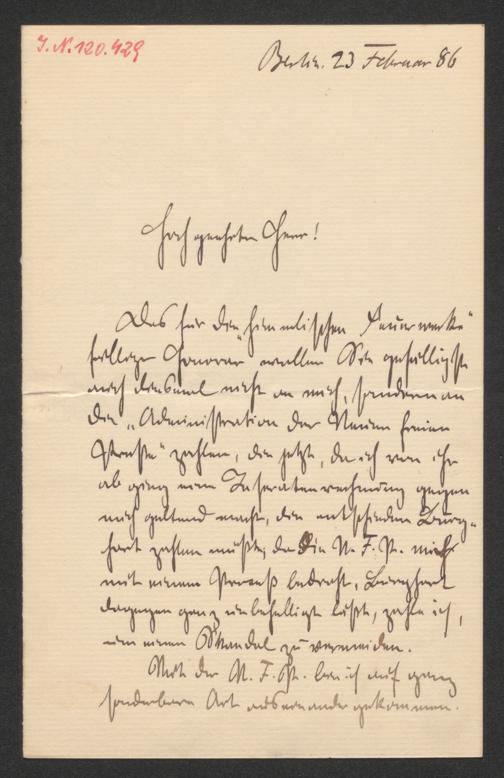 Meyer, Max Wilhelm: Brief an Karl Emil Franzos. Berlin, 23.2.1886