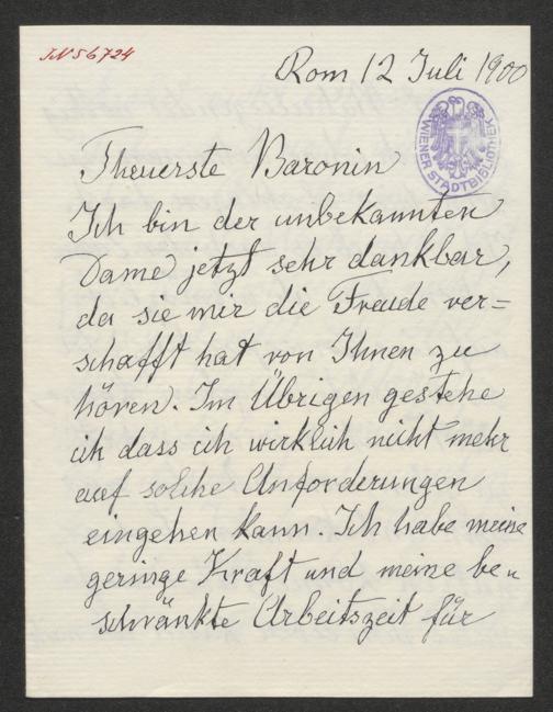 Meysenbug, Malwida von: Brief an Marie von Ebner-Eschenbach. Rom, 12.7.1900
