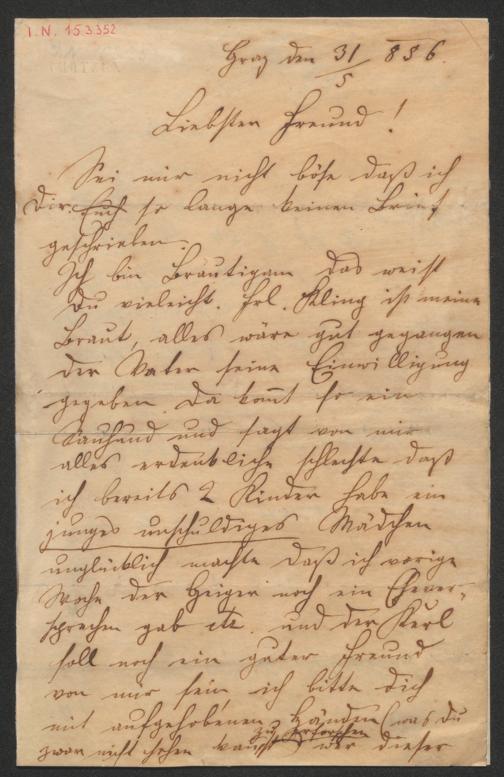 Millöcker, Carl: Brief an Unbekannt. Graz, 31.5.1865