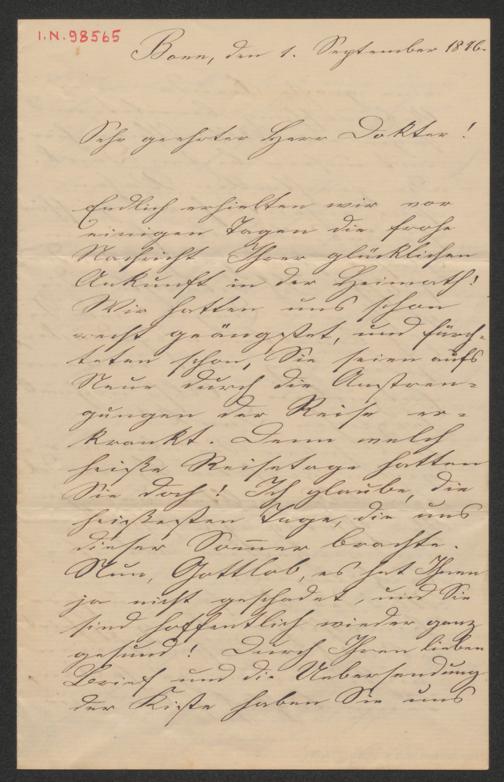 Oelbermann, Elise: Brief an Richard von Kralik. Bonn, 1.9.1876