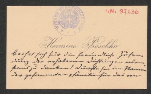 Proschko, Hermine: Visitenkarte an Richard von Kralik. o.O., o.D.