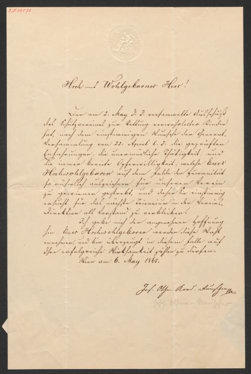 Rauscher, Joseph Othmar von: Brief an Franz von Heintl. Wien, 6.5.1865