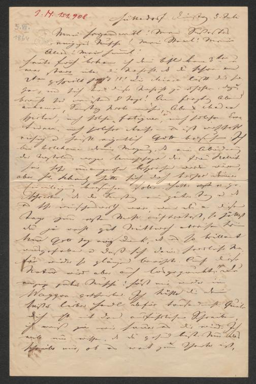 Rettich, Carl: Brief an Julie Rettich. o.O., 5.7.1864