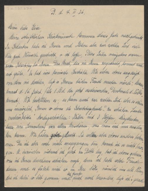 Sklarek, Elisabet: Brief an Elise Richter. Berlin, 4.3.1926