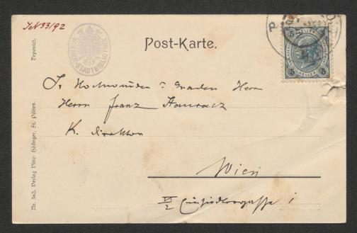 Scheicher, Joseph: Ansichtskarte an Franz Stauracz. o.O., 3.7.1901