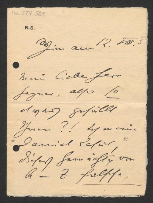 Schaukal, Richard von: Brief an Jakob Hegner. Wien, 12.8.1905