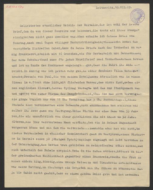 Specht, Richard: Brief an Alexandra Specht. Leitmeritz, 10.7.1929