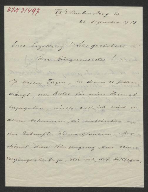 Tietze, Hans: Brief an Richard Weiskirchner. o.O., 23.12.1918