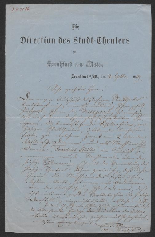 Vollmer, Theodor: Brief an Ludwig Eckardt. Frankfurt, Main, 3.9.1859