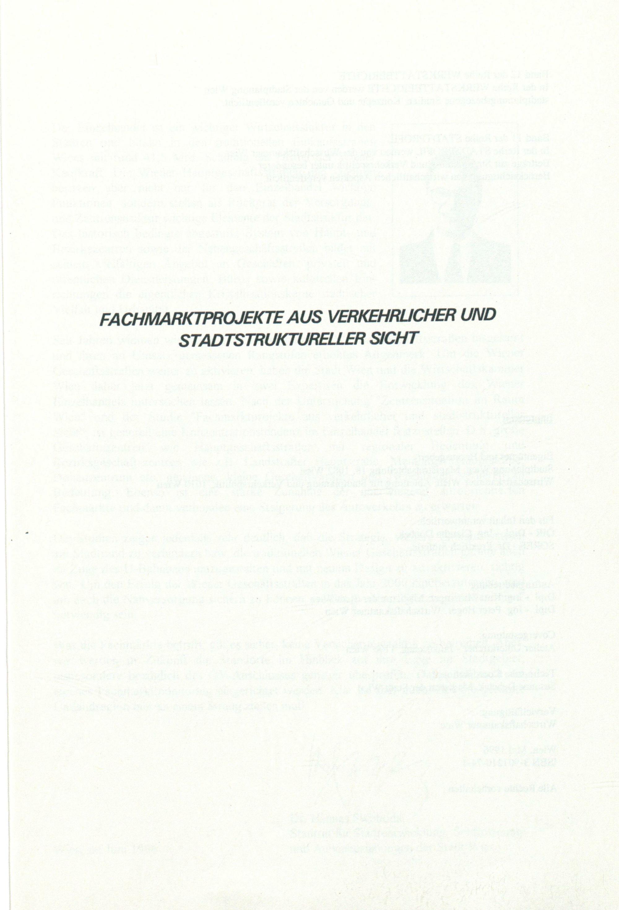 Fachmarktprojekte aus verkehrlicher und stadtstruktureller Sicht / Herausgeber: Stadtplanung Wien, Magistratsabteilung 18
