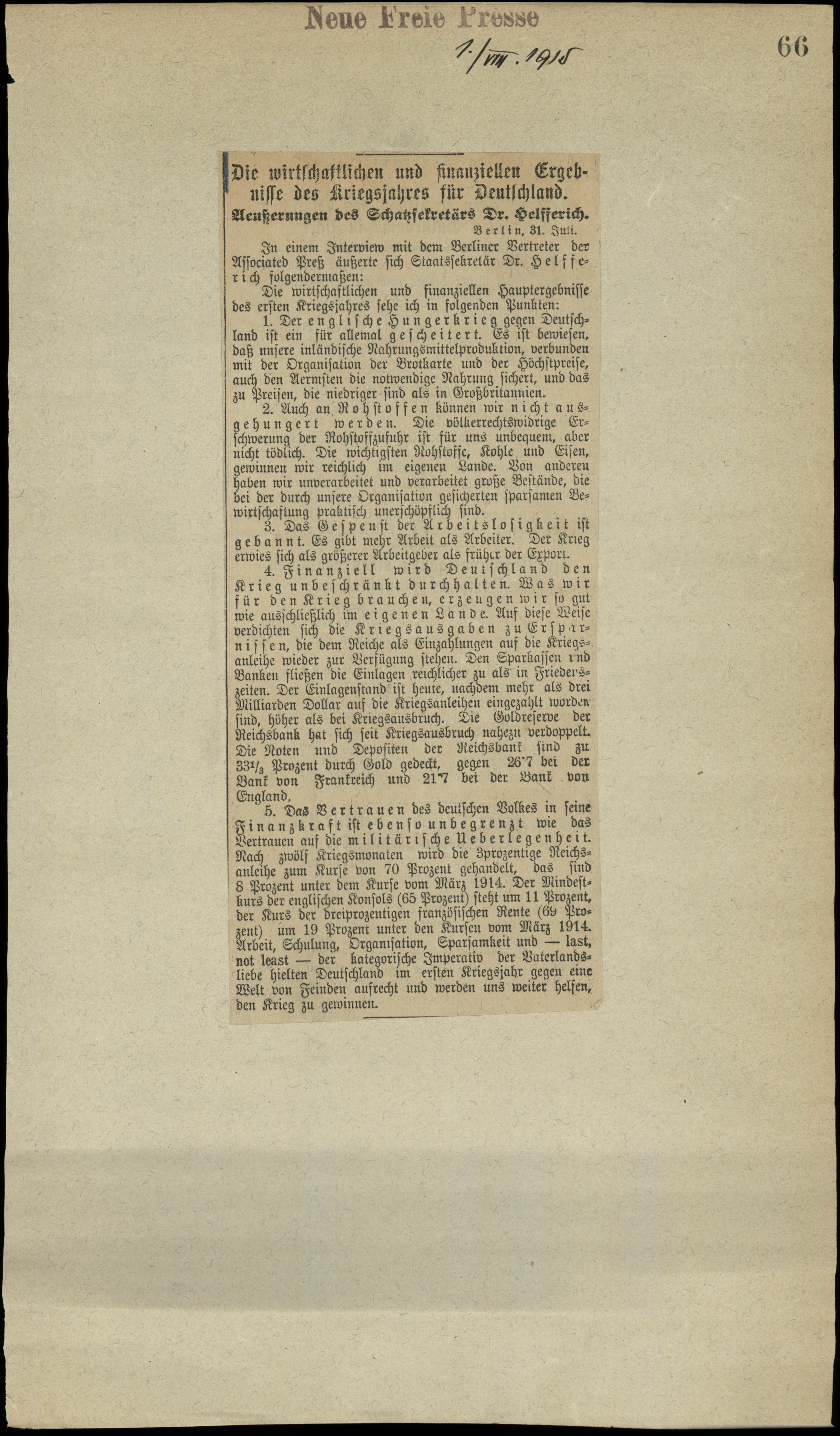 Die wirtschaftlichen und finanziellen Ergebnisse des Kriegsjahres für Deutschland.