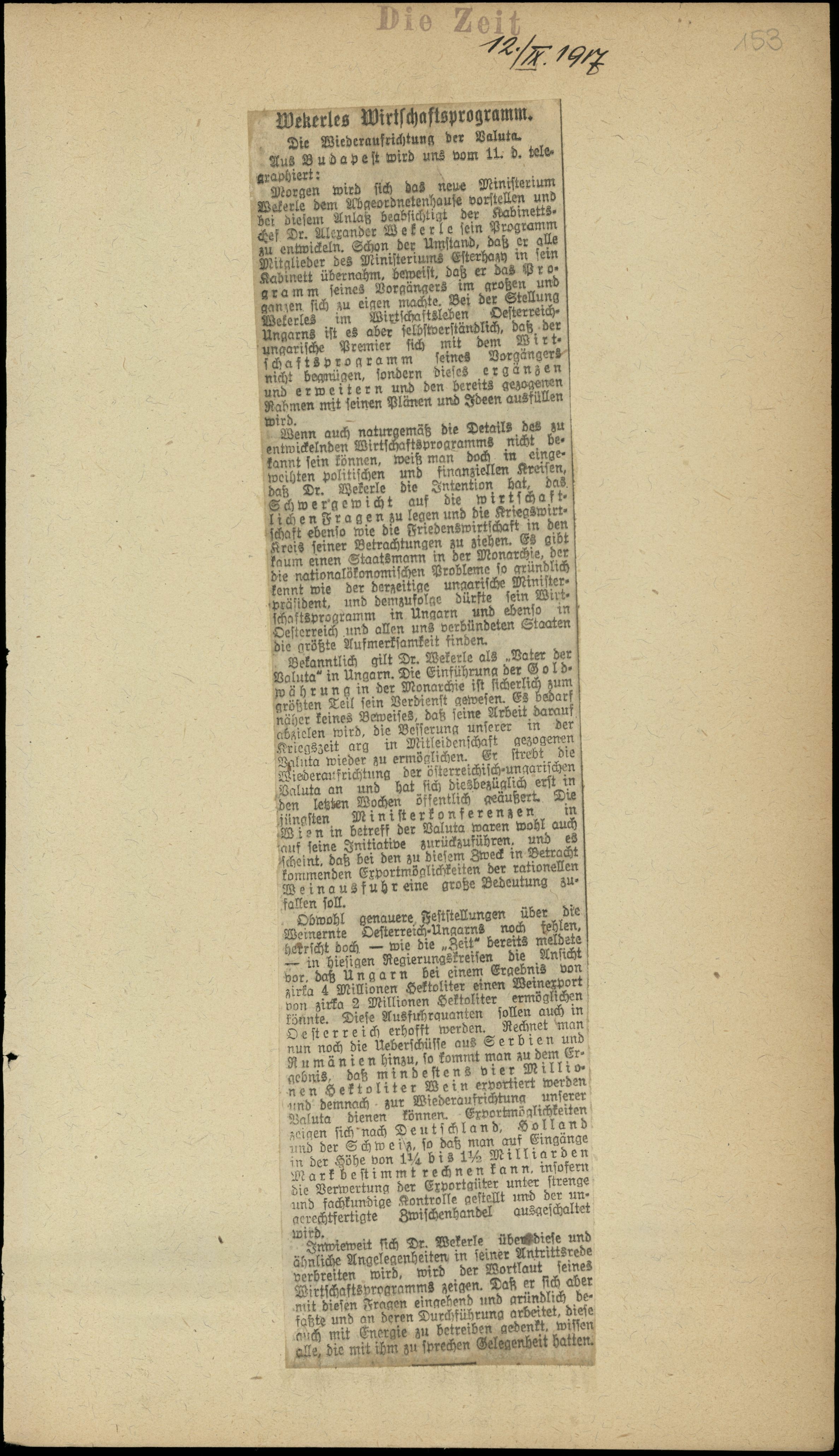 Wekerles Wirtschaftsprogramm.