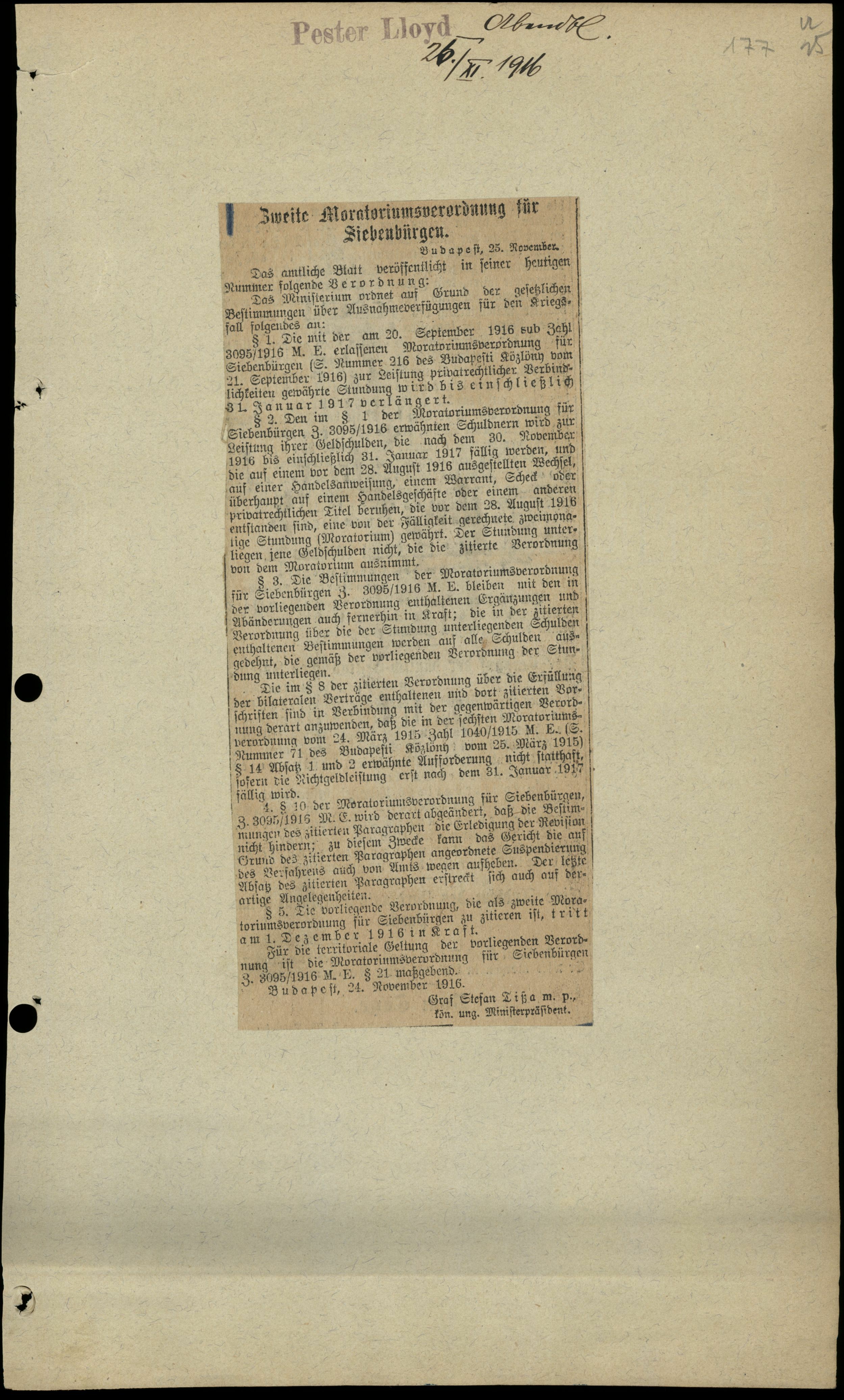 Zweite Moratoriumsverordnung für Siebenbürgen.
