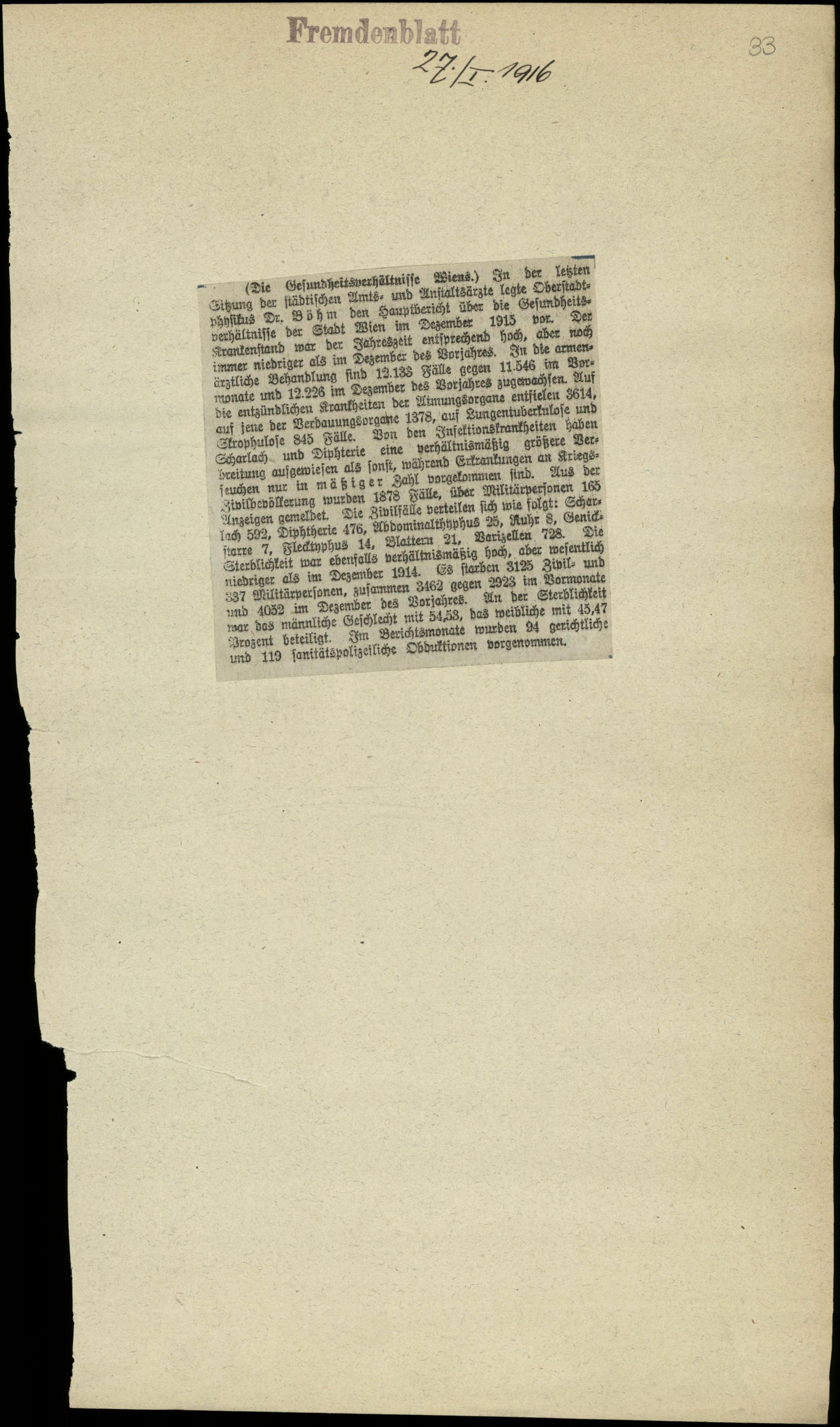 Die Gesundheitsverhältnisse Wiens.