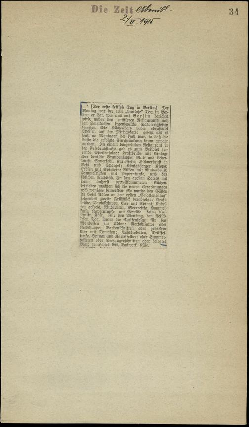 / Der erste fettlose Tag in Berlin. 2.11.1915