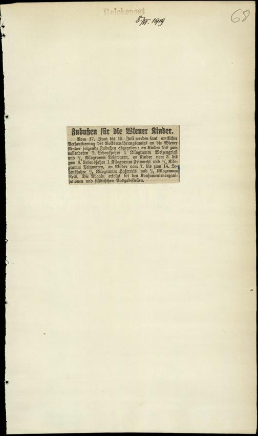 / Zubußen für die Wiener Kinder. 8.6.1919