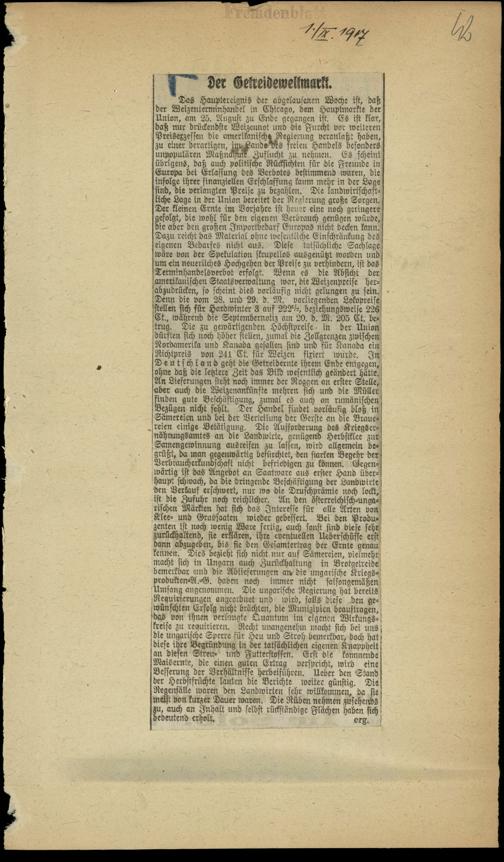 / Der Getreideweltmarkt. 1.9.1917