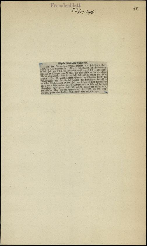 / Abgabe städtischer Kartoffeln. 23.1.1916