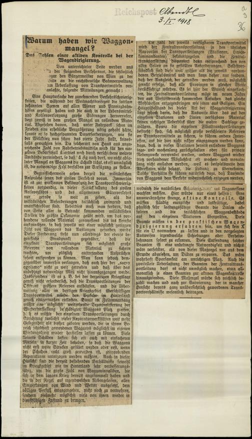 / Warum haben wir Waggonmangel?. 3.1.1918