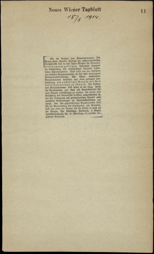 / An die Besitzer von Benzinmotoren. 18.8.1914