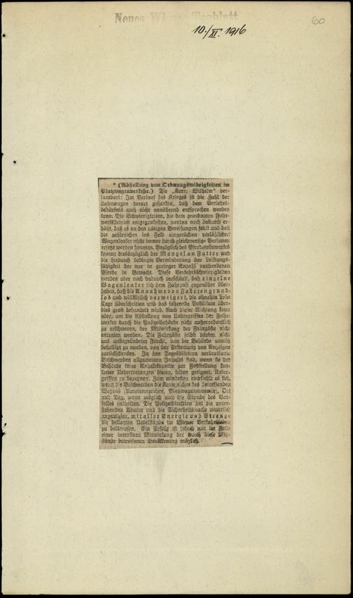 / Abstellung von Ordnungswidrigkeiten im Platzwagenverkehr. 10.11.1916