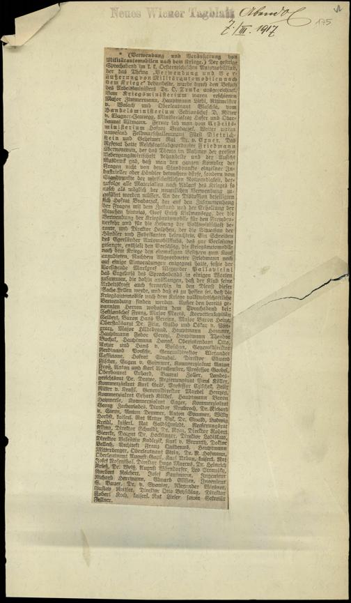 / Verwendung und Veräußerung von Militärautomobilen nach dem Kriege. 7.3.1917