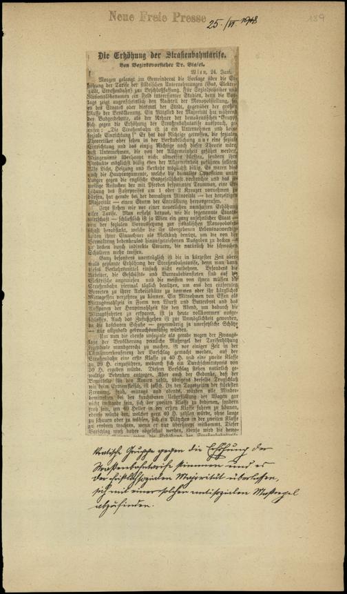 / Die Erhöhung der Straßenbahntarife. 25.6.1918