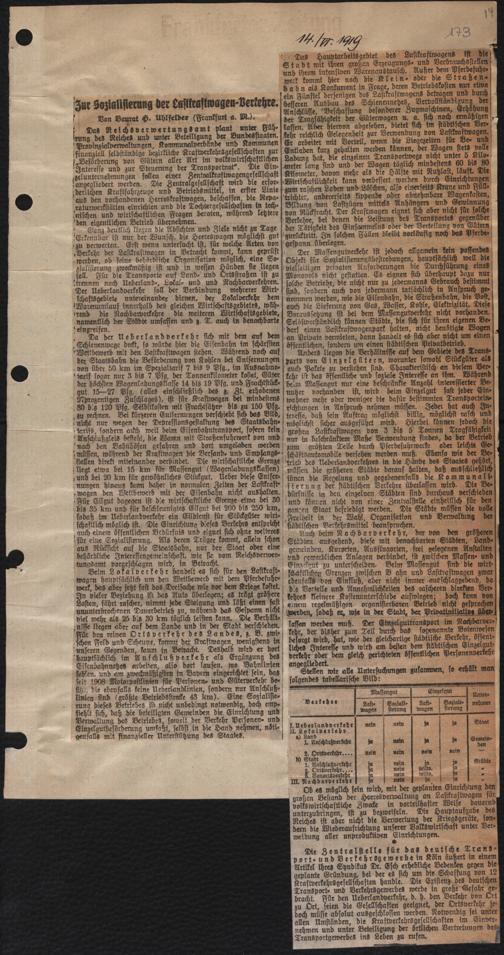 / Zur Sozialisierung der Lastkraftwagen-Verkehre. 14.6.1919