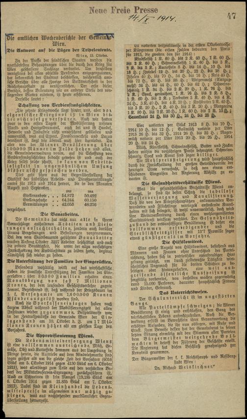 / Die amtlichen Wochenberichte der Gemeinde Wien. 14.10.1914