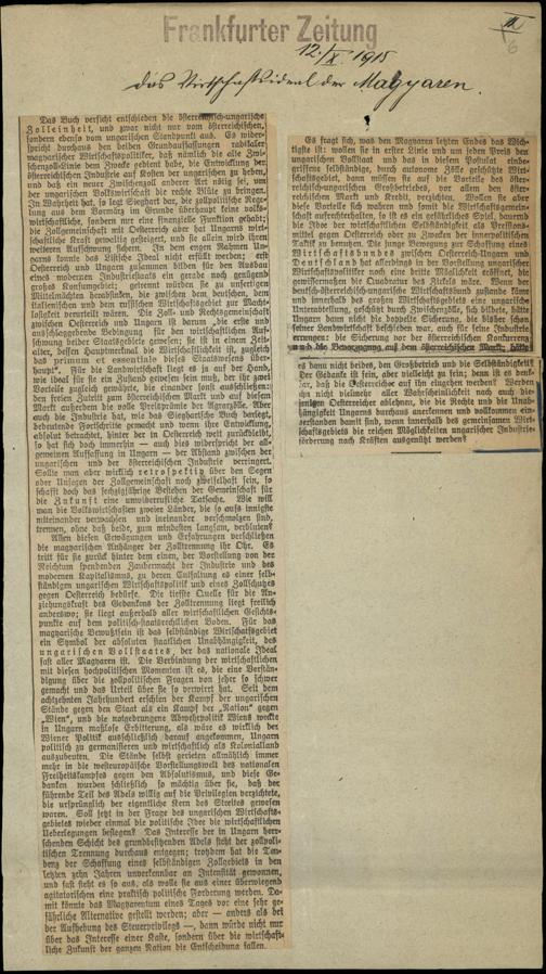 / Das Wirtschaftsideal der Magyaren. 12.10.1915