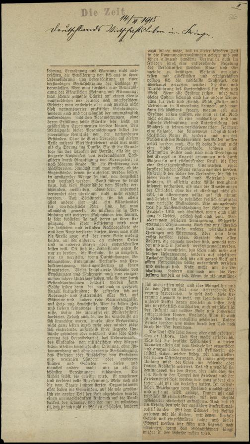/ Deutschlands Wirtschaftsleben im Kriege. 14.11.1915