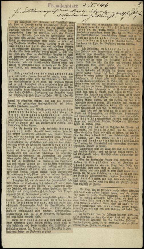/ Handelskammerpräsident Nemec über die wirtschaftlichen Aufgaben der Zukunft. 5.2.1916