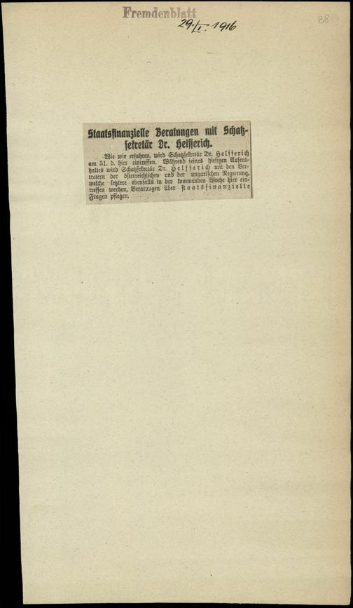 / Staatsfinanzielle Beratungen mit Schatzsekretär Dr. Helfferich. 29.1.1916