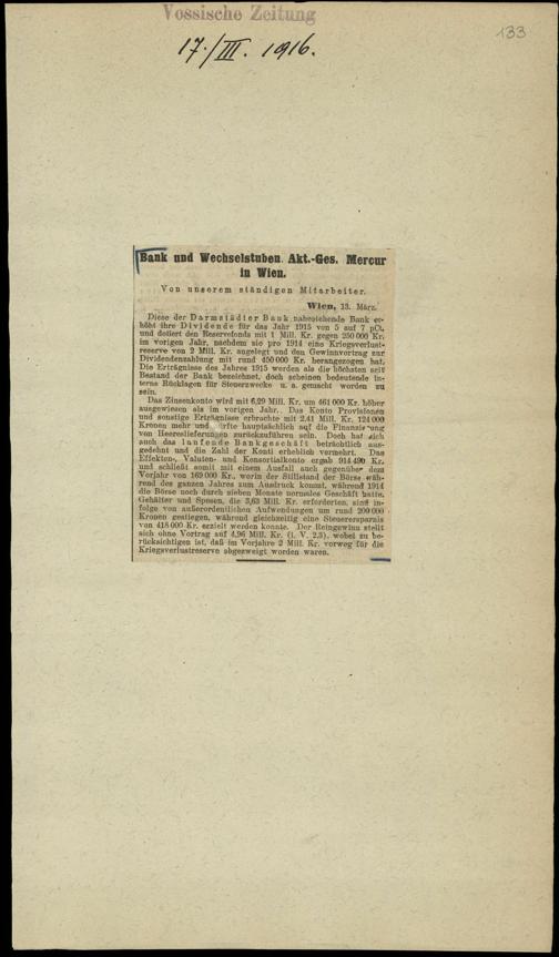 / Bank und Wechselstuben Akt.-Ges. Mercur in Wien. 17.3.1916
