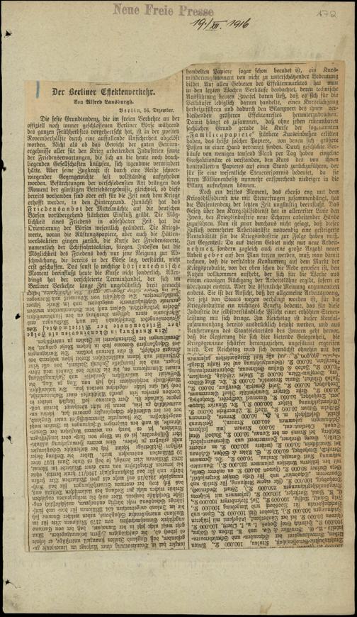 / Der Berliner Effektenverkehr. 19.12.1916