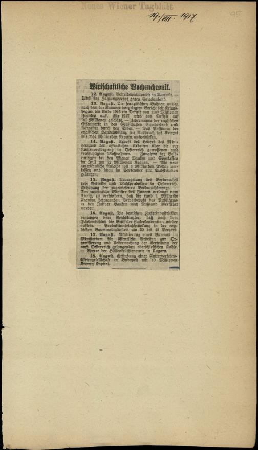 / Wirtschaftliche Wochenchronik. 19.8.1917